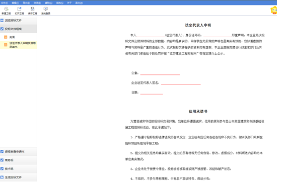 根據要求填寫封面及法定代表人申明相關信息(此節點也可能是直接導入響應文檔,請根據實際情況進行處理)。