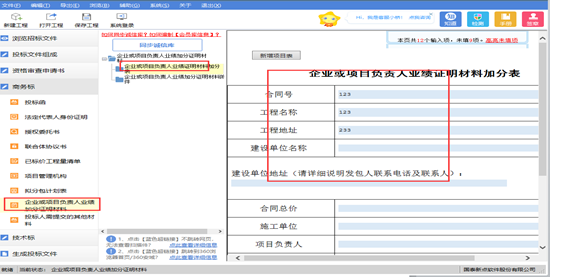 5.企業業績或項目負責人加分證明材料。加分表需要手動填寫,如果需要填寫多張加分表,可點擊【新增項目表】新增表出來。證明材料附件,是需要從誠信庫中同步下載到該節點中。