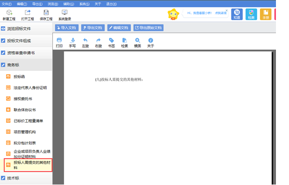 6.投標人需要提交的其他材料。根據要求導入相關文檔即可。